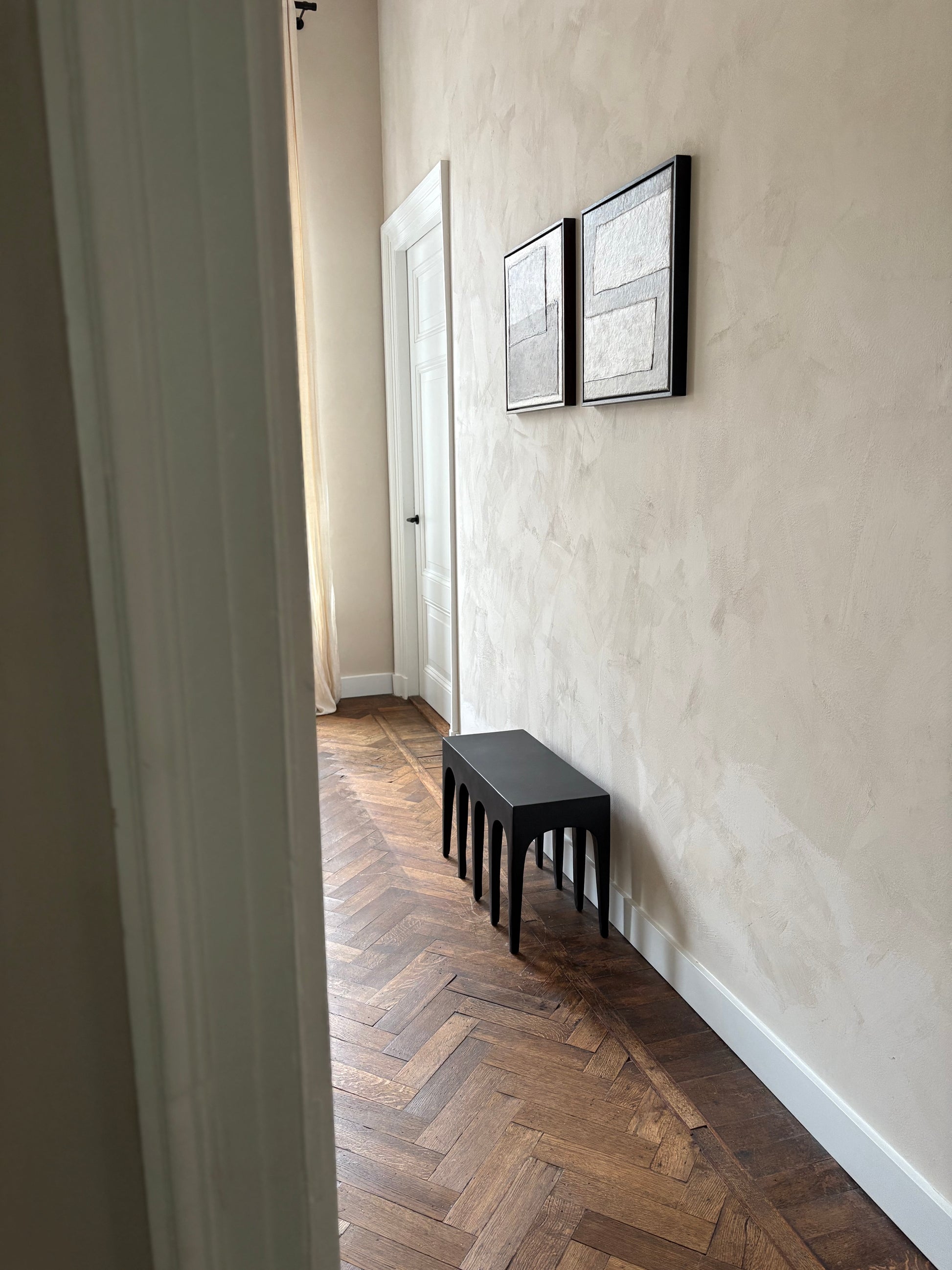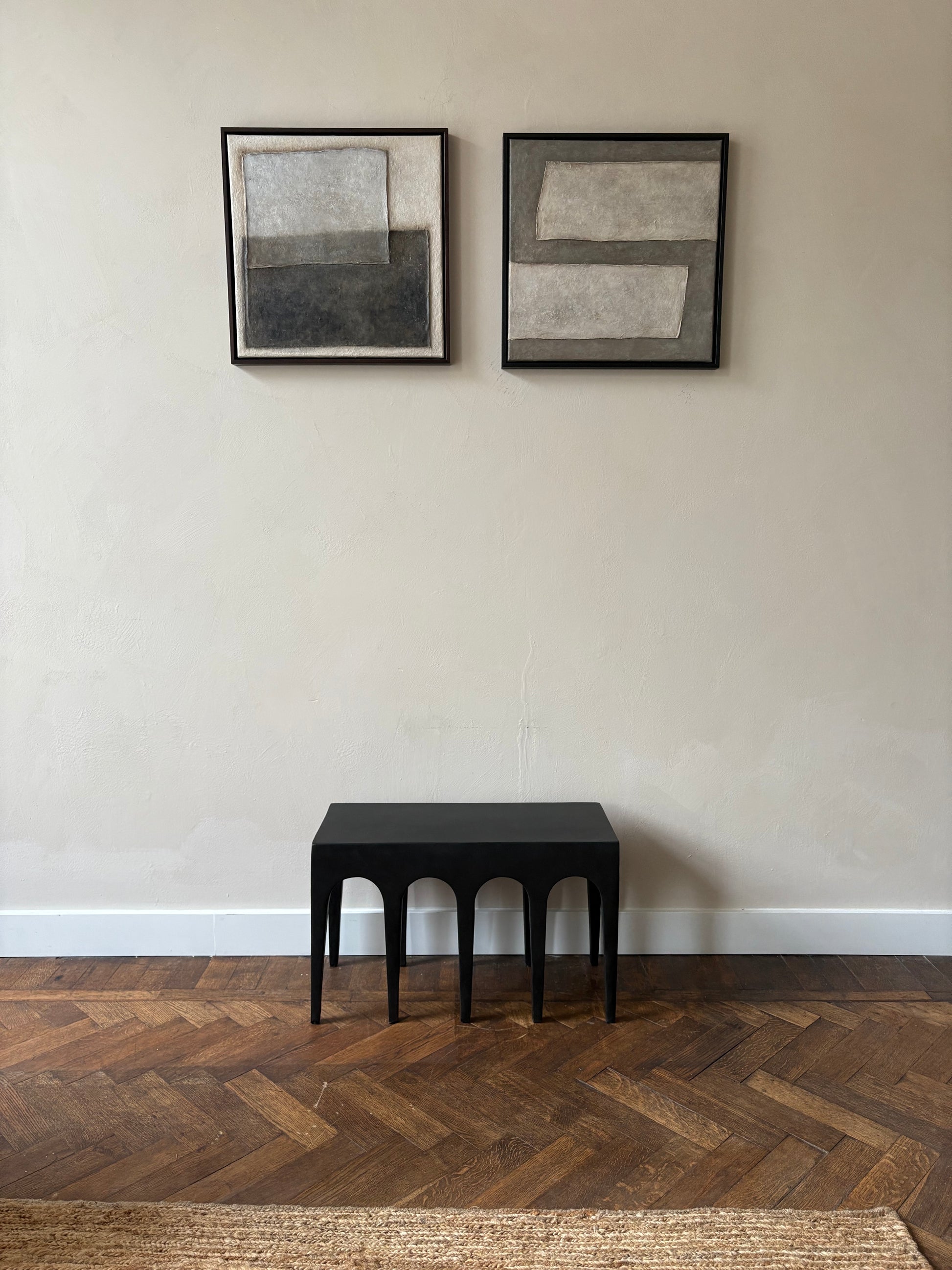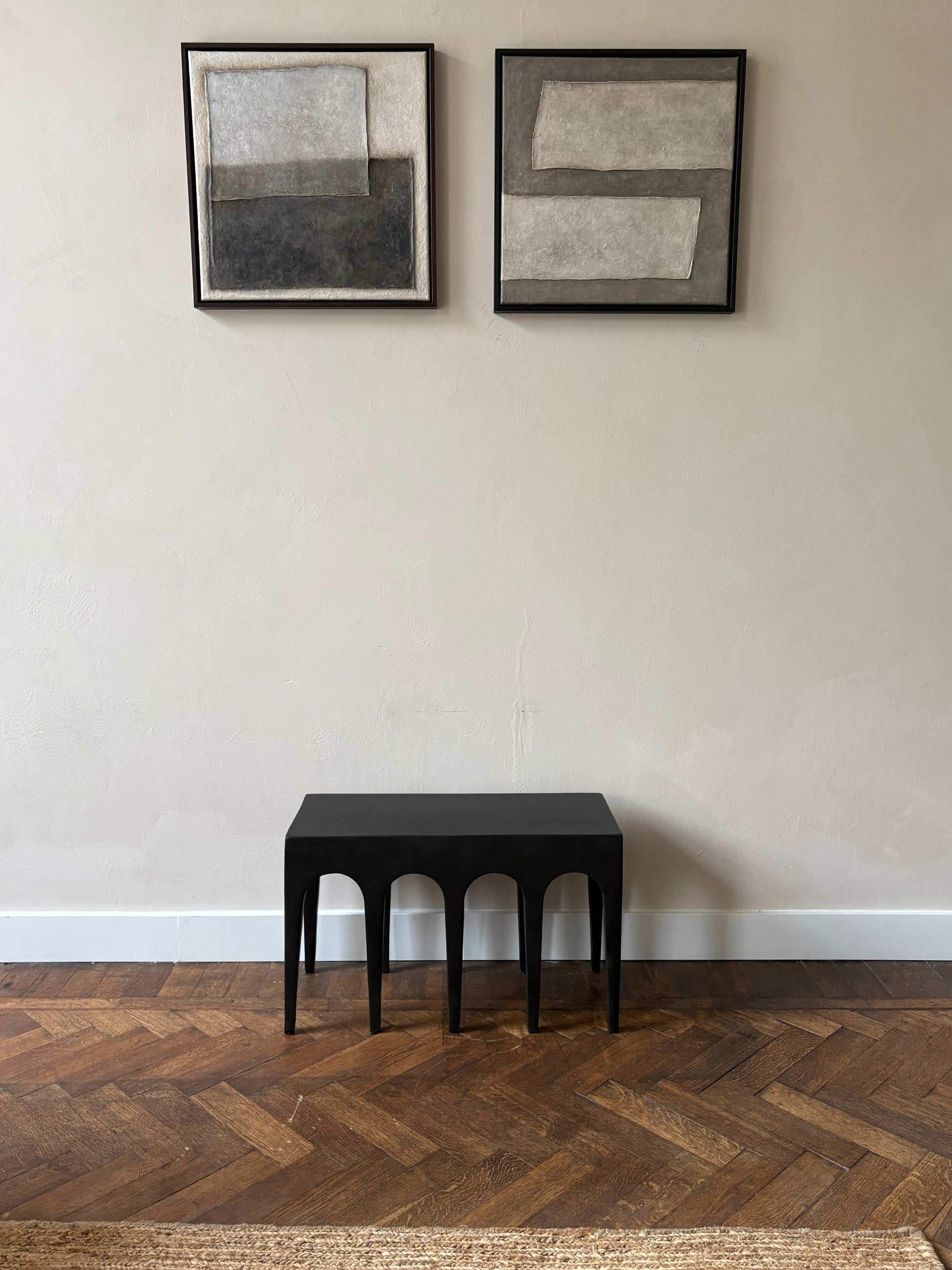 Like a piece of architecture gone astray, the Bow console table draws parallels to the old aqueducts from the Roman Empire and classic architectural geometry. Repetition of arches create a beautiful, sleek, yet somewhat box silhouette and the long legs make it seem narrow and light even though the character is anything but insignificant. The table is cast in lightweight fiber concrete to create a unique textured surface and increase mobility. It is hand painted with multiple layers of paint, creating a strong and resistant surface.