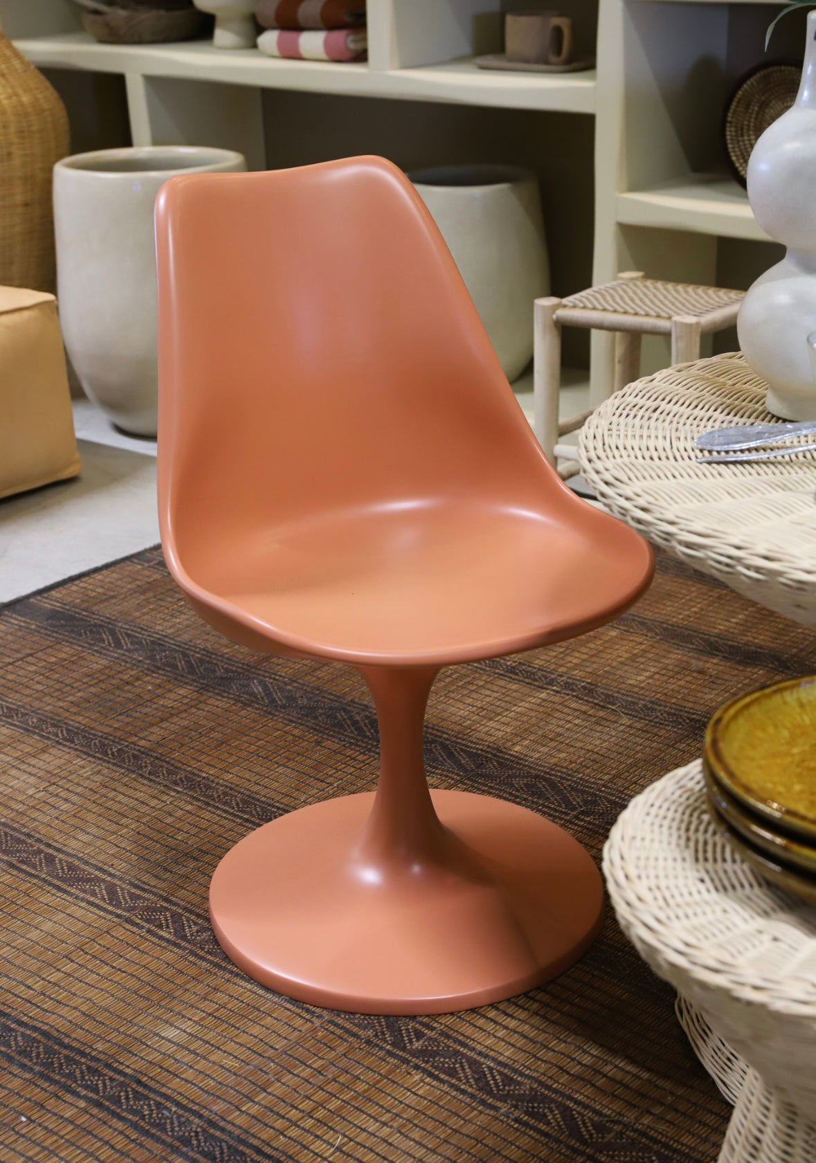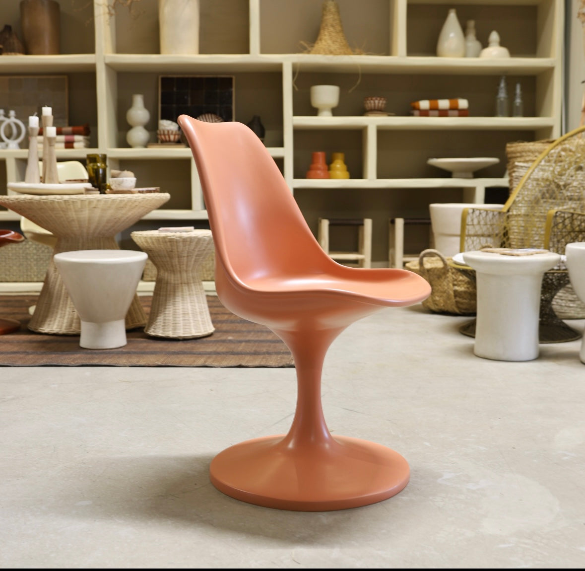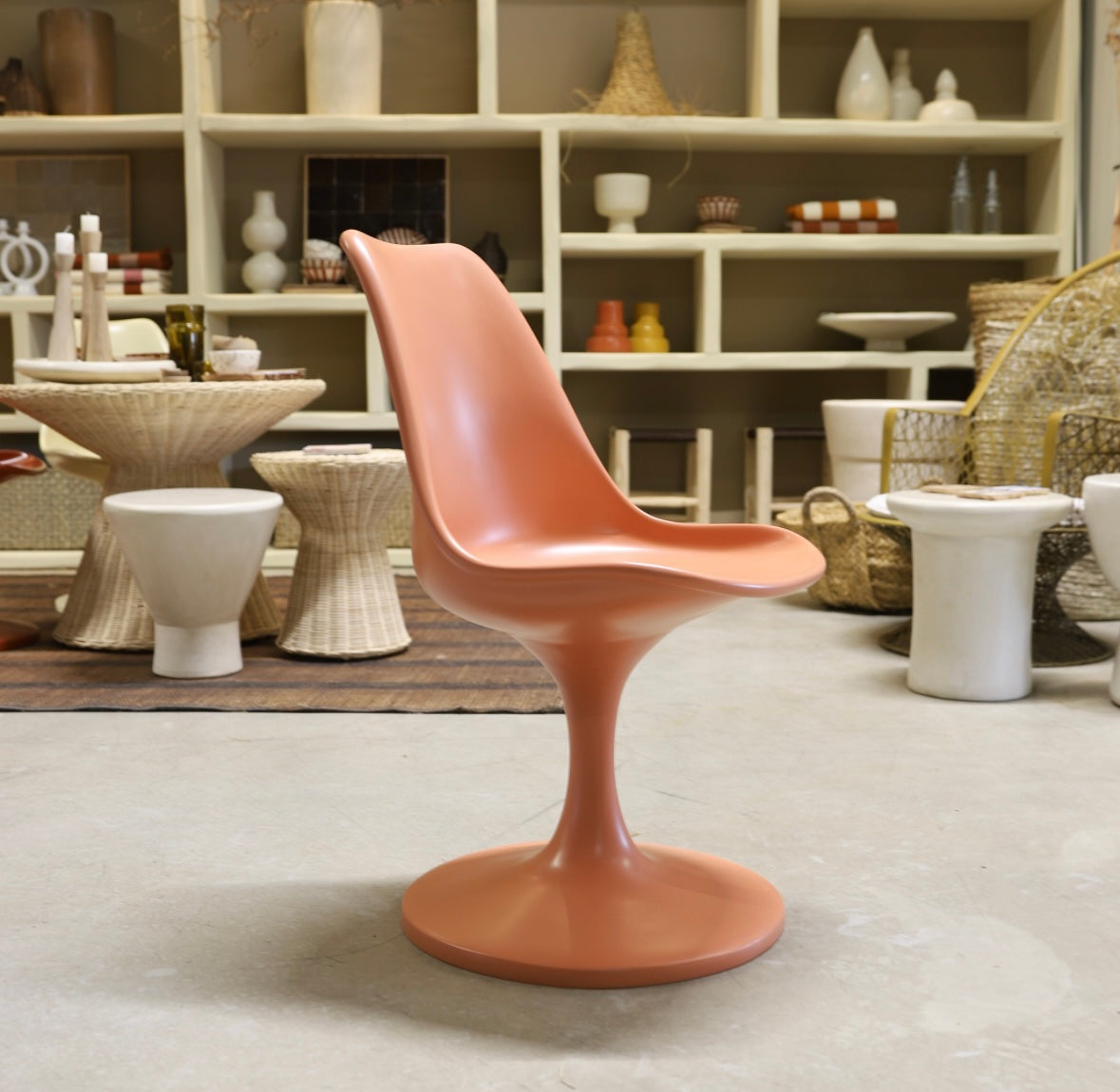 Mooie welbekende stoelen in tulp vorm met de hand gemaakt door ambachtslieden in Marokko en vervaardigd uit, veelal gerecycled, polyester. Doordat de sculptuur van de stoel in één keer gegoten is, is de stoel naadloos en zijn er geen scherpe randen.
